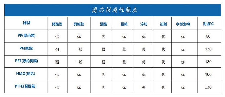 濾芯性能:過濾精度:1μm,5μm,10μm,20μm,40μm,70μm,100μm