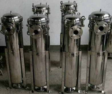當使用玻璃鋼袋式過濾器進行液體過濾時,需要被過濾的液體會從過濾容器的側面或者下面的進液口進入到濾器中,之后再由被網籃支撐的濾袋上方沖入濾袋中,濾袋會因為液體的沖擊與均勻的壓力面之后所展開,使得液體的物料可以在整個過濾袋內表面得到均勻分布,透過濾袋的液體沿著金屬支承網籃壁,由過濾器底部出液口排出。濾出顆粒雜質被截留在過濾袋內,完成過濾過程。為了保持過濾器高效暢通和過濾精度以及確保下游液體不被污染,運行一段時間后應停機,打開濾器端蓋,把截留物和濾袋一起取出,更換新的濾袋,濾袋的更換周期視實際情況而定。